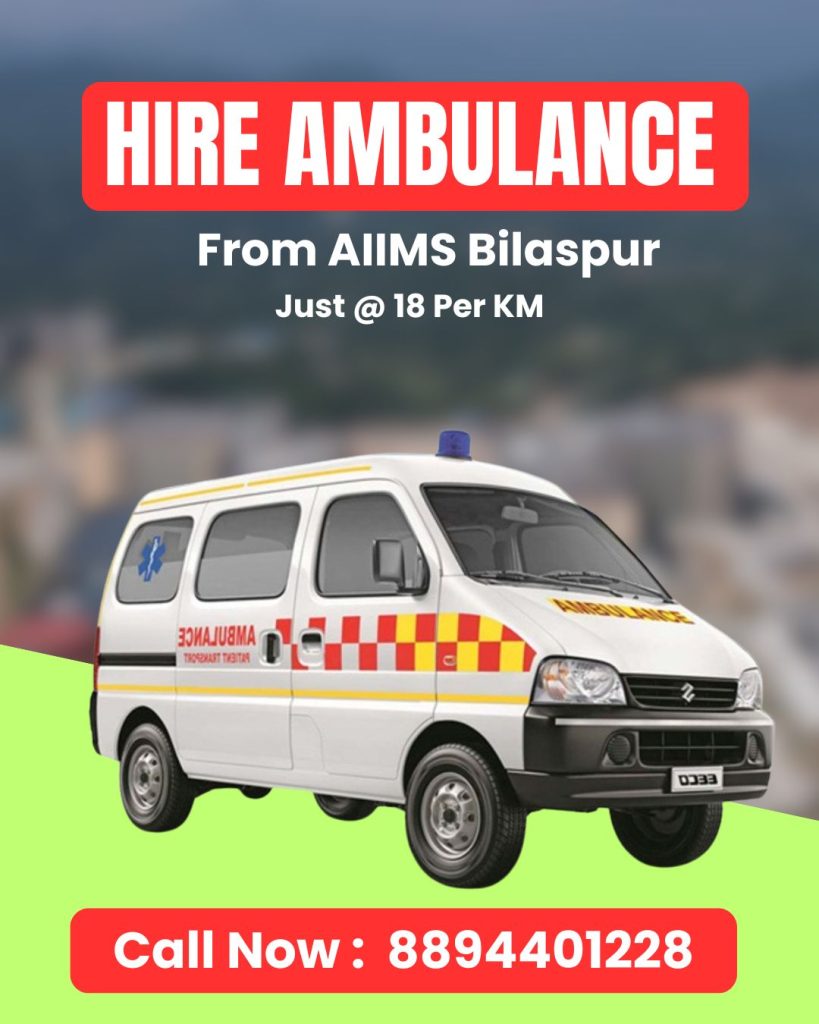 Eeco ambulance from AIIMS Bilaspur — fast, safe patient transfer with trained drivers, available 24/7. Book With Thakur Travels